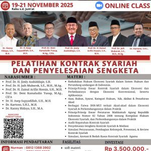 PELATIHAN KONTRAK SYARIAH DAN PENYELESAIAN SENGKETA BATCH 01, 19-21 NOVEMBER 2025Rp3.500.000