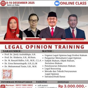 PELATIHAN LEGAL OPINION BATCH 10, 8-10 DESEMBER 2025 (ONLINE)Rp3.000.000Klik Daftar