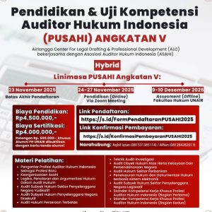 🚨 Pendidikan & Uji Kompetensi Auditor Hukum Indonesia (PUSAHI) Angkatan V Sudah Dibuka! 🚨